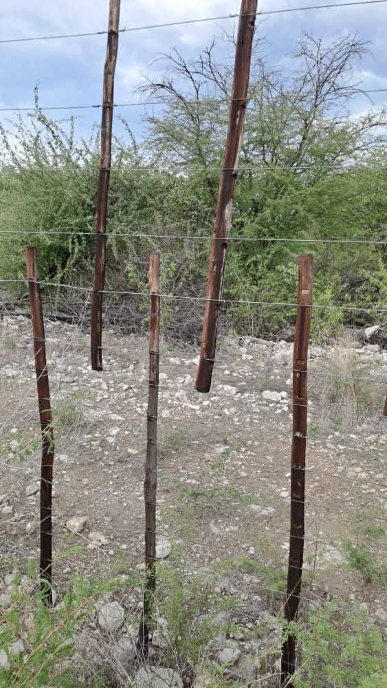 * game proof boundary fence with 16 strand wires on wooden poles
