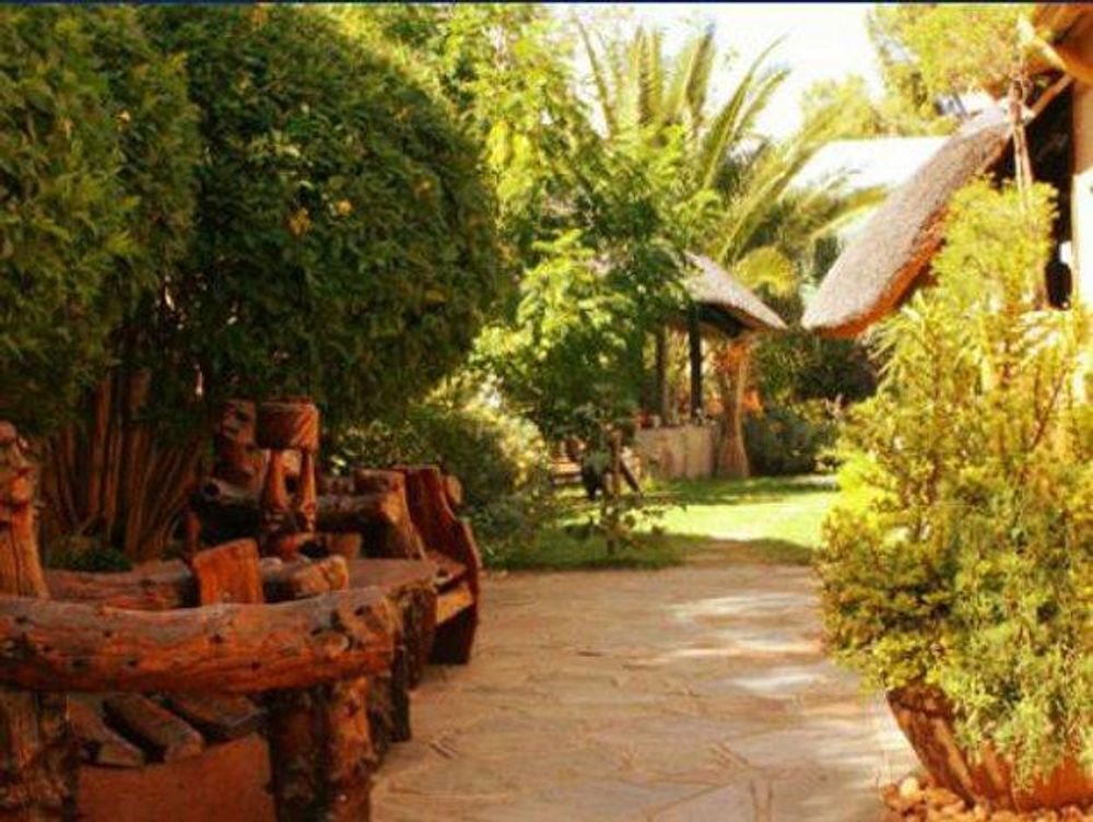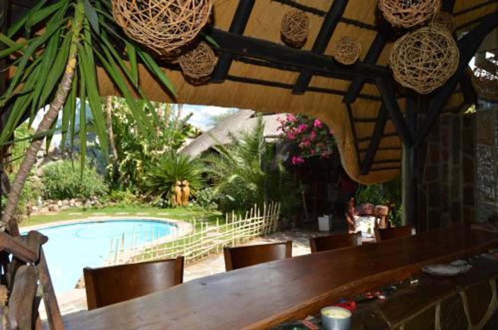 ■the thatched lapa is utilized as breakfast area.